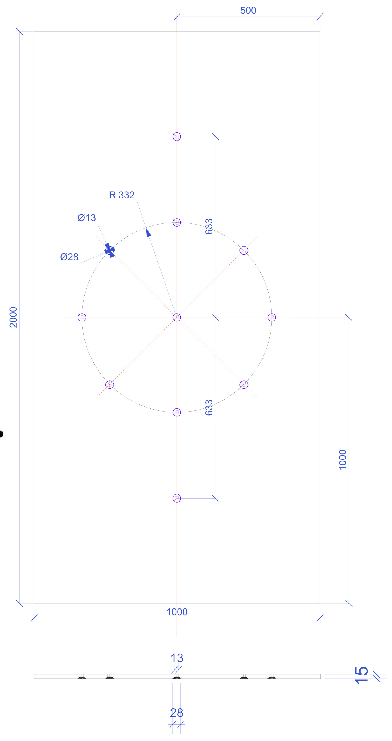 • Dimensions : L 2000 x P 1000 x H 15 mm (hors anneaux)