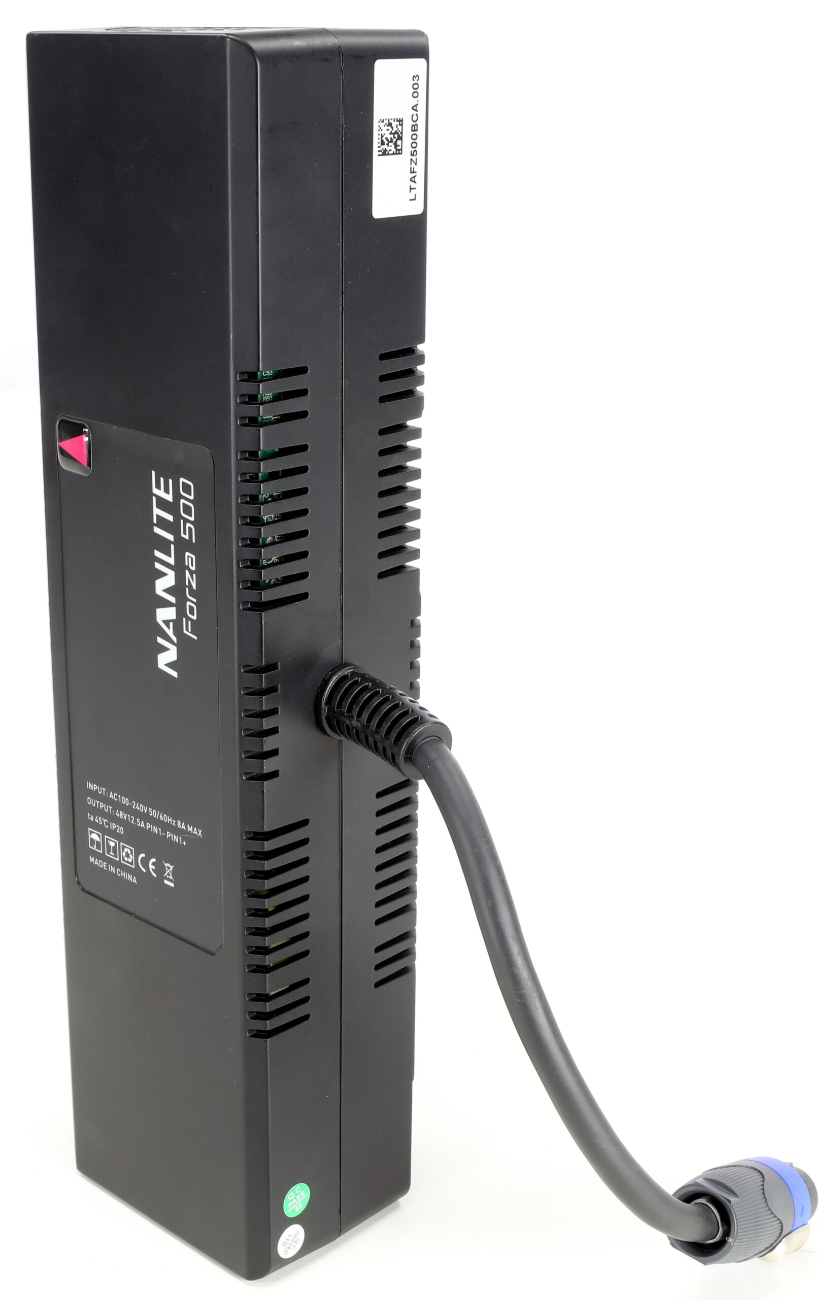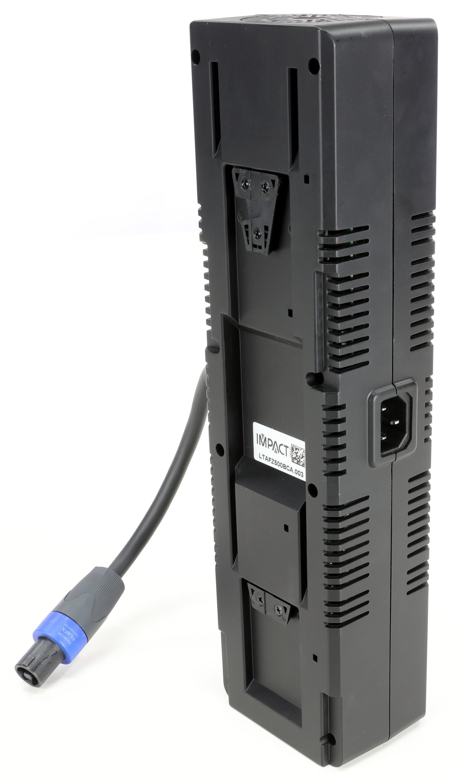 - Connectique : sur le boîtier de commande : DMX in/out XLR5 broches – PowerCon True1 in