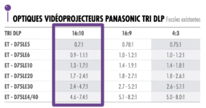 Utilisez le calculateur de distances de projection Panasonic en ligne.