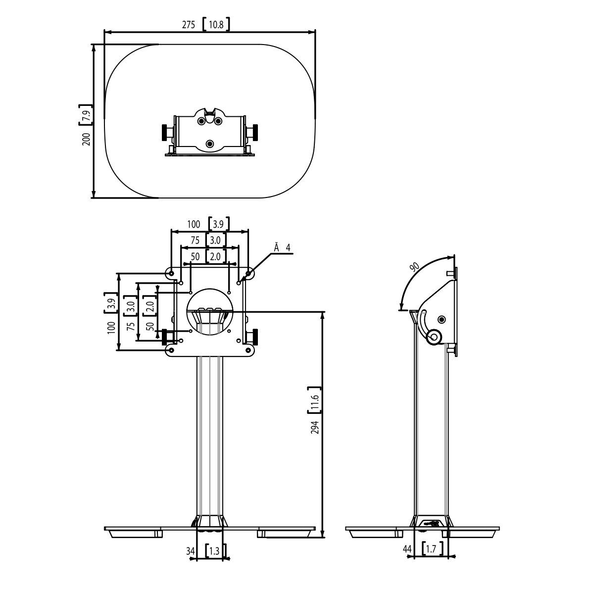 - Prévu pour fixation 4 trous avec écartement : 50 / 75 / 100 mm