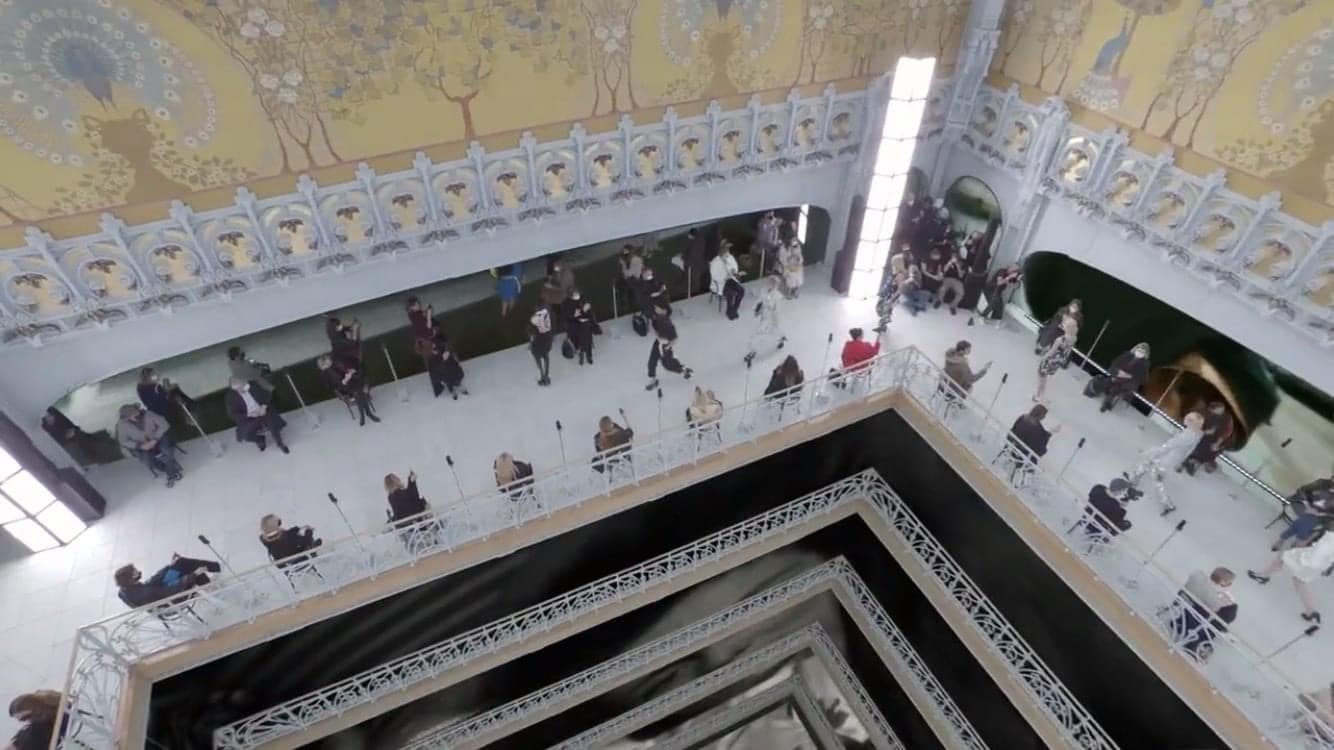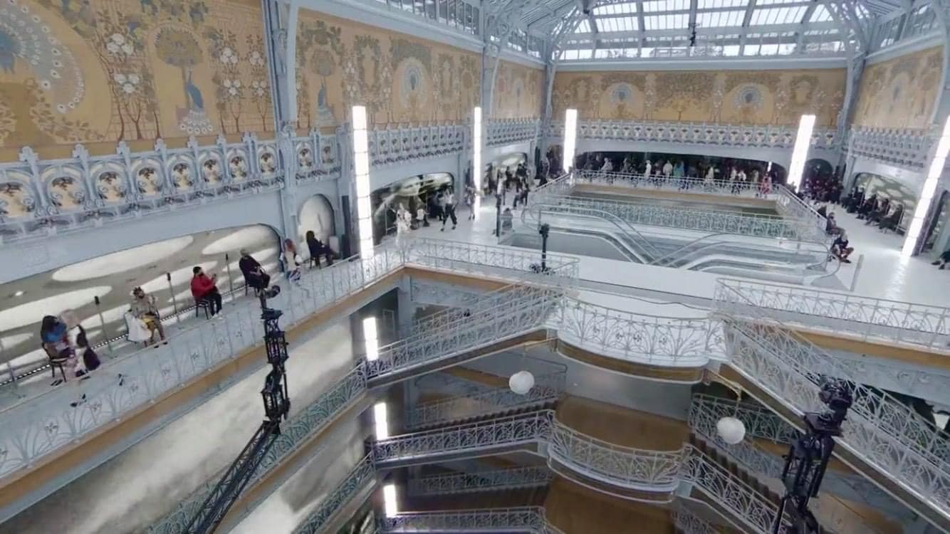 Le défilé s’est tenu sous la grande verrière de la Samaritaine, monument historique à l’architecture Art Déco et aux fresques Art Nouveau.